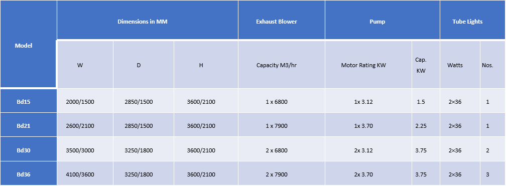 - The air-slot design, opening at the bottom of the wash down sheet (water wall) ensures uniform air movement in the booth.